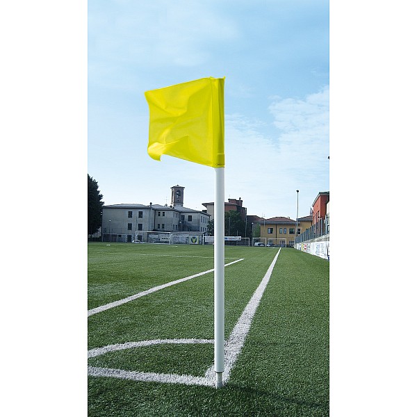 The soccer corner post is made of safety material according to the parameters of the FIFA regulations. The diameter of the rod is 50 mm. Delivery includes rod, flag, ground socket and banners clip.