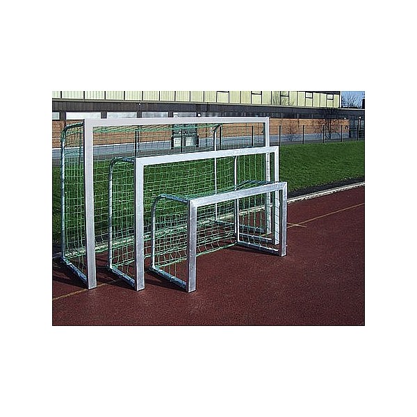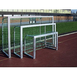 Suitable for street soccer and hockey. Surface natural aluminum blank, net hoops folded. Incl. Network &. Safety net hook. Free shipping with order for two goals