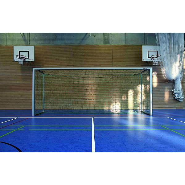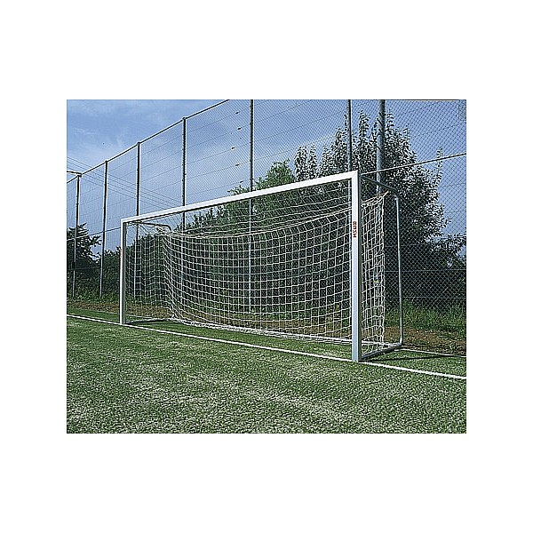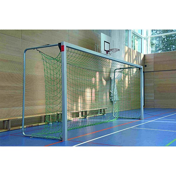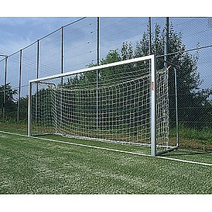 Aluminum youth soccer goal, corner welded, with lacquered, foldable net brackets. Goal depth 1.25 m. With bottom cross tube. . Mesh bracket with fastening straps for floor mounting. Plastic net fastening wedges. .