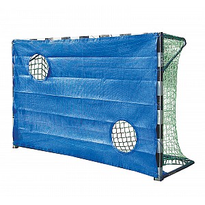 The goal shot training wall made of blue polyethylene knitted fabric is ideal for clubs and hobby players. Through the two existing openings, with a Ø of approx. 50 cm, an attractive and goal-oriented shot training is possible. The net can be fixed quickly and easily with the help of the supplied lines (2 x 10 m).