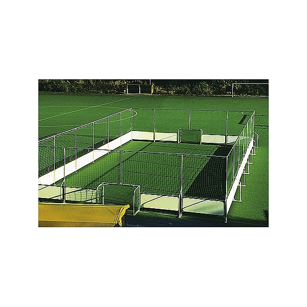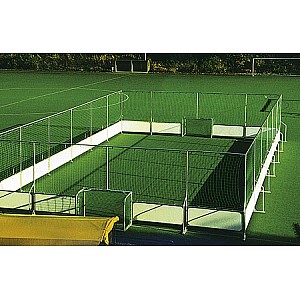 The entire street soccer court consists of an aluminum frame construction, 30 mm thick, and white laminated hardboard, 25 mm thick, m with dimensions of 2.00 x 0.86. The construction height is 1 m, m is the safety net height approx. 3 Total height approx 3 m.Die individual elements are simply hooked into the support posts - done! The system can be installed by two people in 1-2 hours on any surface. The bands elements can be used for advertising excellent because they sided smooth surface KU-have. Delivery incl. 2 goals 1.80 x 1.20 m. The system was developed jointly with the Lower Saxony Football Association and has been there for years successfully. It is ideal for street fairs, schools and kindergartens, for public relations and other marketing activities. For outdoor use, make sure that the system is not constantly exposed to the weather, as this may cause damage.