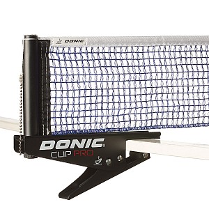 The table tennis net set Clip Pro by DONIC offers an easy assembly by using the clip system (spring lock). The net set is suitable for table tennis tables with a table top thickness of up to 25 mm (not suitable for the DONIC Waldner Premium 30 table). The ITTF-approved net is made of sheet steel for long-term use. The height of the set can be adjusted with the height adjustment screws. The inner net is equipped with a tension cord. The DONIC Clip Pro net set is available in black-blue, black-green, grey-metallic-blue and grey-metallic-green - please specify when ordering.