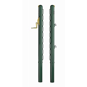 Pair of tennis posts with round profile, Ø 76mm, according to DIN, special aluminum profile, green powder-coated. including ground sockets.