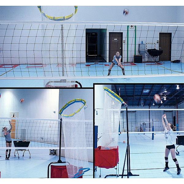 The target net increases the precision of setting and smashing in volleyball training. The portable and mobile, practical training aid is used to improve playing technique. In addition to volleyball training, the net can also be used for soccer training and other sports and games. The frame and base are made of welded steel, which makes the frame extremely durable and stable. The net is also adjustable in height. The level of difficulty can also be adjusted. To do this, simply change the angle of the target ring.