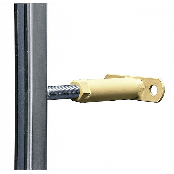 BENZ Playing rail C-profile 28 x 28 mm made of galvanized steel for doweling to the wall and flush installation in side and end walls of sports halls. An excellent space-saving possibility to fix nets, cords etc. in the hall directly to the hall wall. For fastening of cords the wall rail is equipped with two adjustable eyelets. For tensioning a net we recommend the optionally available spindle tensioning winch. Suitable for many sports like volleyball, fistball, etc. GS certified by TÜV AUSTRIA.