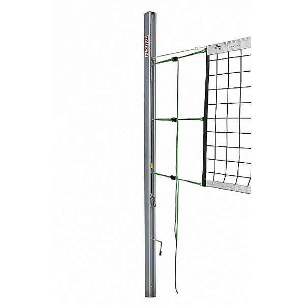 Topmodell (knots) with 4 mm polypropylene, 6-point suspension (according to international regulation), Kevlar rope (about 5 mm, 11.7 m long) and pulleys. Improves uniform tension of the network because the network and Kevlar rope be tensioned simultaneously.