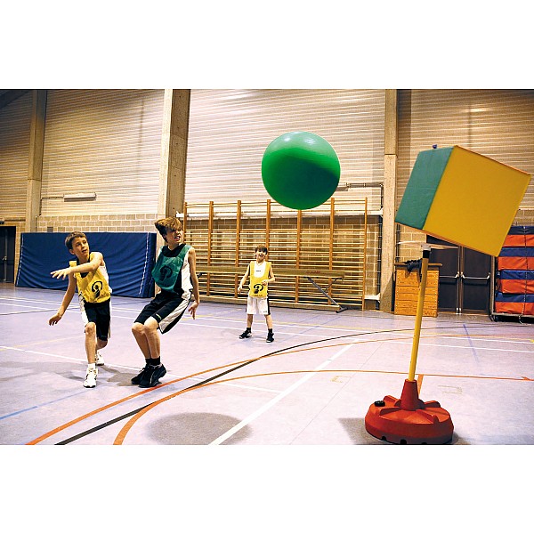 Poull Ball is a new team game that emphasises fair play. The game gives all participants the chance to develop their skills. It is a fluid and spectacular ball game for mixed teams. The main focus is on personal performance and positional play - in contrast to more combat-orientated contact sports. The members of the five-man teams pass a ball with a diameter of 55 cm to each other. The aim is to hit a target (a multi-coloured cube) after at least three passes without entering the forbidden circle. The passes are the most important element of the game. You can't play without team spirit - every player is important. The best thing about Poull Ball: the game is very easy to learn.