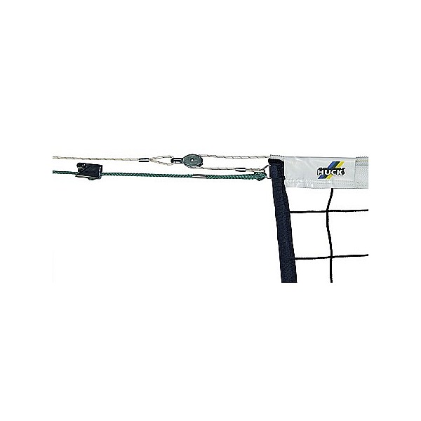 Topmodell (knots) with 4 mm polypropylene, 6-point suspension (according to international regulation), Kevlar rope (about 5 mm, 11.7 m long) and pulleys. Improves uniform tension of the network because the network and Kevlar rope be tensioned simultaneously.