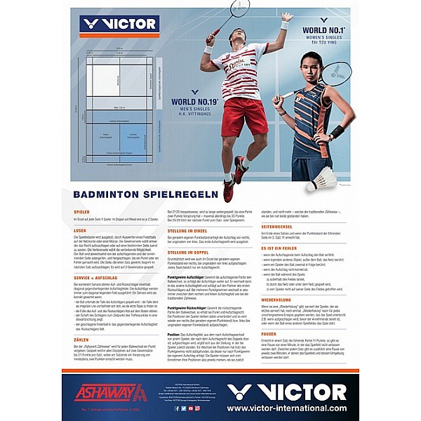 You will find all the common rules of the game and explanations on the subject of badminton on a poster in DIN A2 format in German and English. To change the languages, just turn the poster over. Perfect for school lessons.