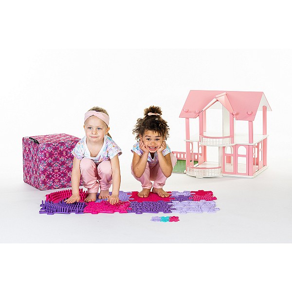 The sensory mats from Muffkin offer children a playful walking experience to train their sense of balance, fine motor skills and tactile perception. The alternation between soft and hard surfaces of the mats is also ideal in physiotherapy for tactile stimulation of the feet and foot reflex zones. The individual mats can be put together like a puzzle. Dimensions of the individual elements 28.4 x 28.4 cm.