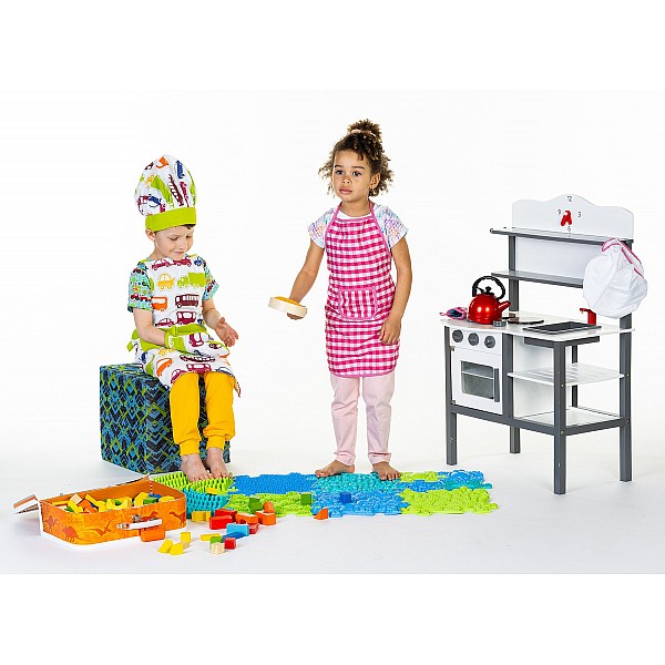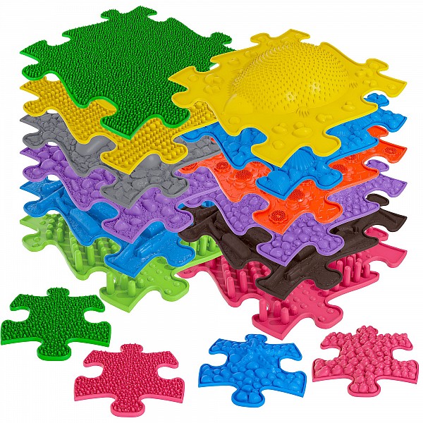 The sensory mats from Muffik offer children a playful walking experience to train their sense of balance, fine motor skills and tactile perception. The alternation between soft and hard surfaces of the mats is also ideal in physiotherapy for tactile stimulation of the feet and foot reflex zones. The individual mats can be put together like a puzzle. Dimensions of the individual elements 28.4 x 28.4 cm and mini pieces: 14.3 x 17.3 cm.