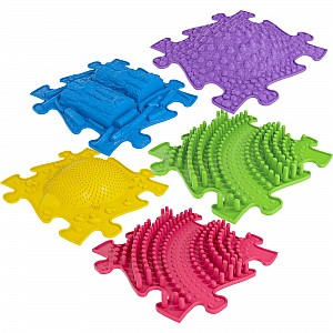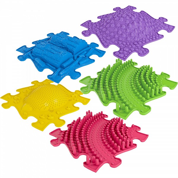 The sensory mats from Muffik offer children a playful walking experience to train their sense of balance, fine motor skills and tactile perception. The alternation between soft and hard surfaces of the mats is also ideal for use in physiotherapy for tactile stimulation of the feet and foot reflex zones. With the extension set, the starter sets can be enlarged. The individual mats can be put together like a puzzle. Dimension of the individual elements 28.4 x 28.4 cm.