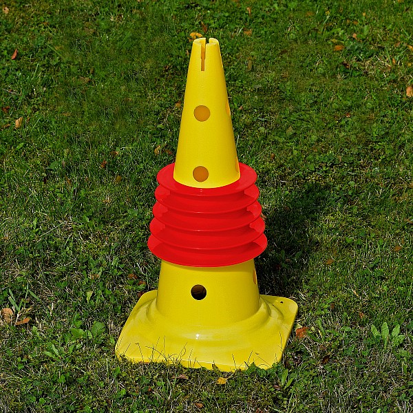 consisting of soft PVC material and is ideal for training with children. Whether football, athletics or games, the colorful cones are versatile. Thanks to the flexible material, the traffic cones are indestructible.