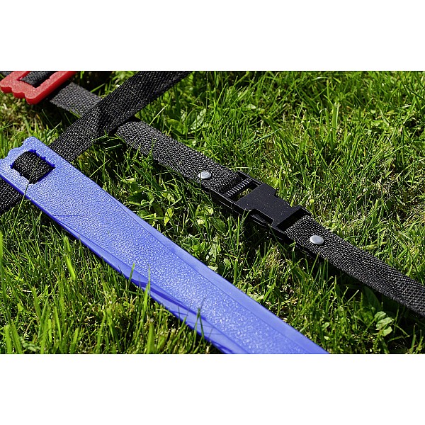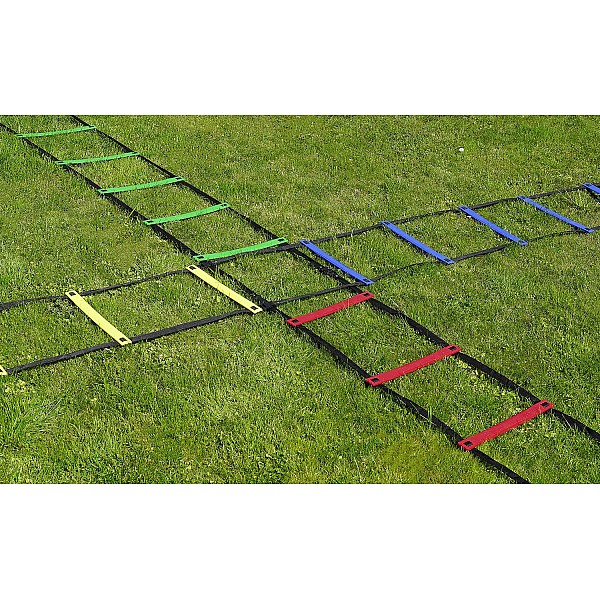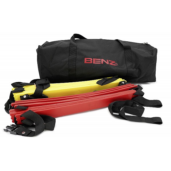 The 4 way coordination ladder is perfect for flexible training, as the structure of the individual rungs can be variably adapted to the respective requirement. With the plug-in buckles attached to the ends of the ladder, the individual ladders can be easily connected. Thus, the most diverse designs can be laid. Can be laid out variably from 4 to 16 meters. The 4 way coordination ladder is supplied with a practical carrying bag.