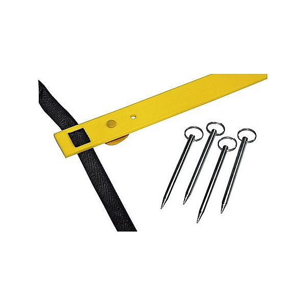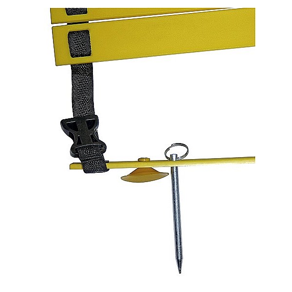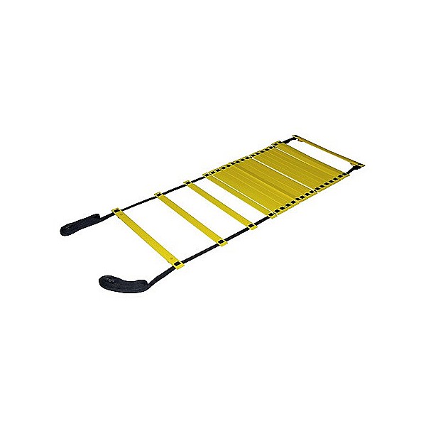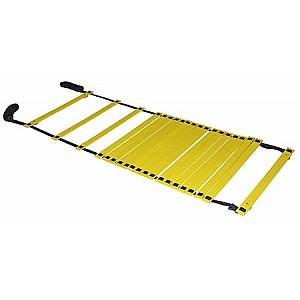Versatile training aid made of weatherproof plastic. 20 displaceable, extra flat bars - 57 cm wide. For running and sprint exercises off quickly and rolled up. 4 earth nails for fastening on the sports field and 4 suction cups for fixing on the hall floor. By connecting clips at the end of several ladders can be clipped together.