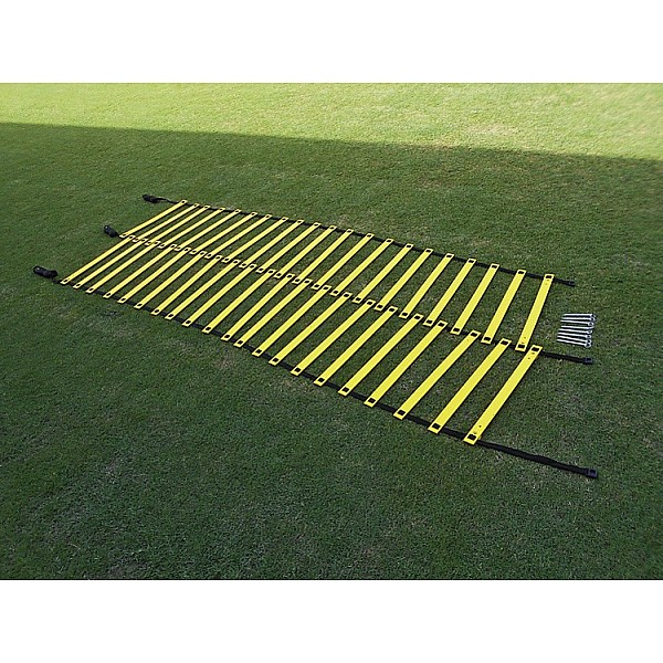 Koordinationsleiter 9m twice, including 42x adjustable sprouts with a width of 57cm, 4x pegs and integrated suction cups for indoor use.