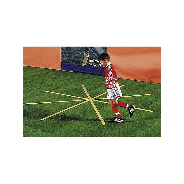 Endless possibilities: diamond, star trapeze, practice fields, start-stop lines, fields of play, target fields, as bands for catching games. Can be extended. Set consists of 19 strips, each 1.5 m. cm with Maßlochung all 10th 22 retaining clips.