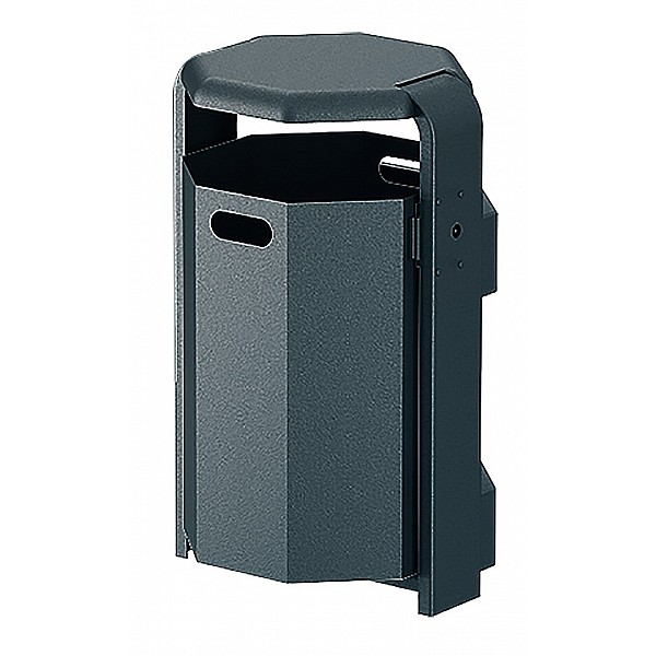 Octagonal litter bin for band clamp fastening with cover.